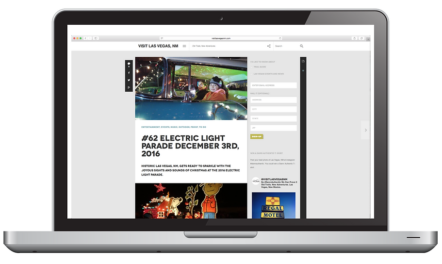 Cisneros Design was awarded the task of creating a comprehensive tourism marketing campaign for the City of Las Vegas, NM, as well as creating a new identity for the city. Prior to Cisneros Design’s involvement, the City’s marketing efforts had been minimal and largely centered around providing funding for events and organizations. Within 6 months, Facebook page engagement was up close to 30%, Twitter followers more than doubled and visits to the city had grown by 289%